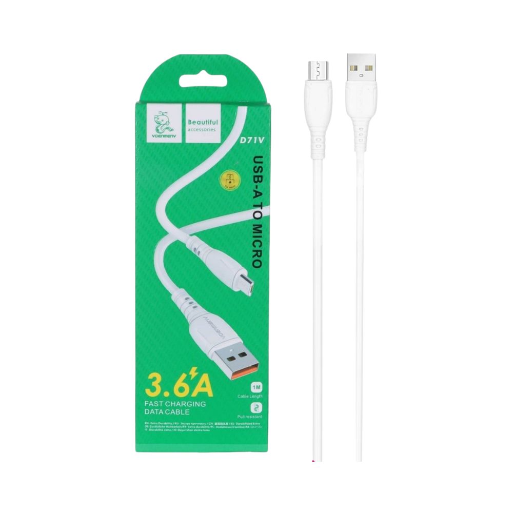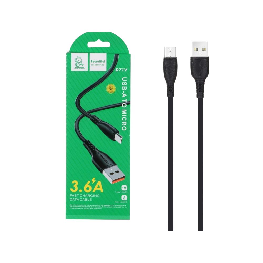 کابل شارژ USB به Micro USB طول 100 سانتی متر دنمن denmen مدل D71V جریان 3.6 آمپر